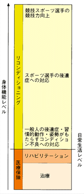 図に示すように、リコンディショニングを身体機能レベルから考えると、